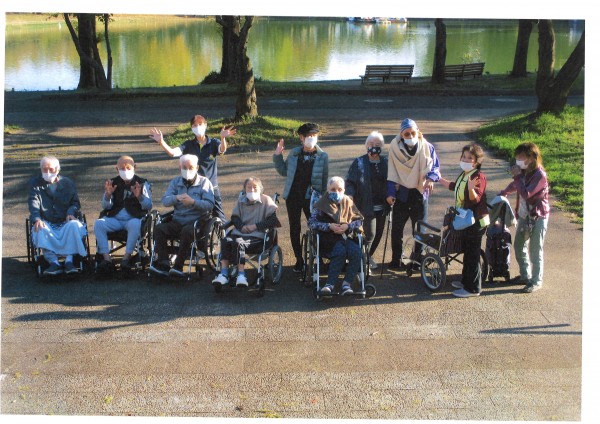 本日午後のレクリエーションは【秋の公園お散歩ツアー】です。場所は川越水上公園、デイサービスから車で10分ほどの大きな公園、春は桜、夏はプールで賑わいます。大きな池がありほとりにはメタセコイアの大きな木が並んでいます。池では水鳥が気持ちよさそうに泳いでいました。鴨でしょうか?人に慣れているのか近くによっても逃げません、たくさんの水鳥たちが芝生の上でひなたぼっこしている横で、皆様もベンチでひなたぼっこ。かわいい水鳥さん達を眺めながら美しい景色を堪能することができました。レモンティーとおやつを食べのんびりとリフレッシュすることができました♪