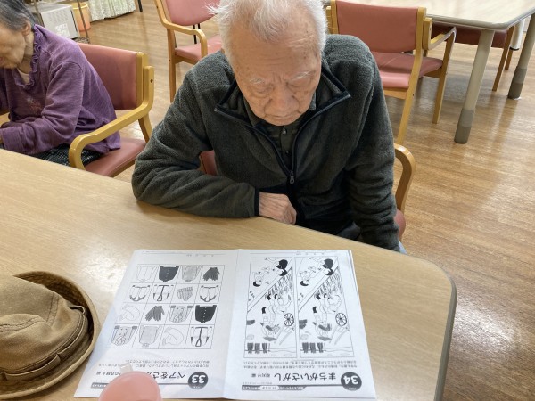 午前中は、間違い探しや、食事のメニューを書いて頂きました♪