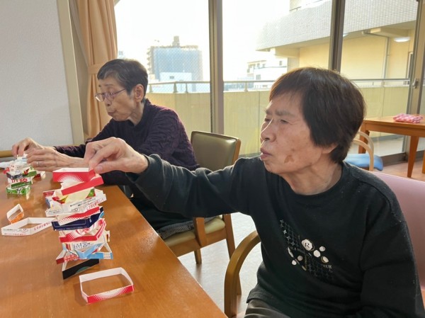 積み上げるのに集中する皆さま。