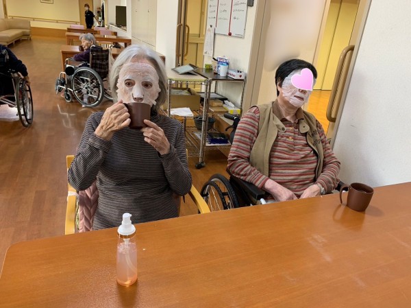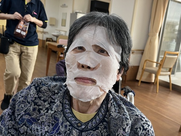 今日は、お肌に潤いをと皆さまにパックをしております。
