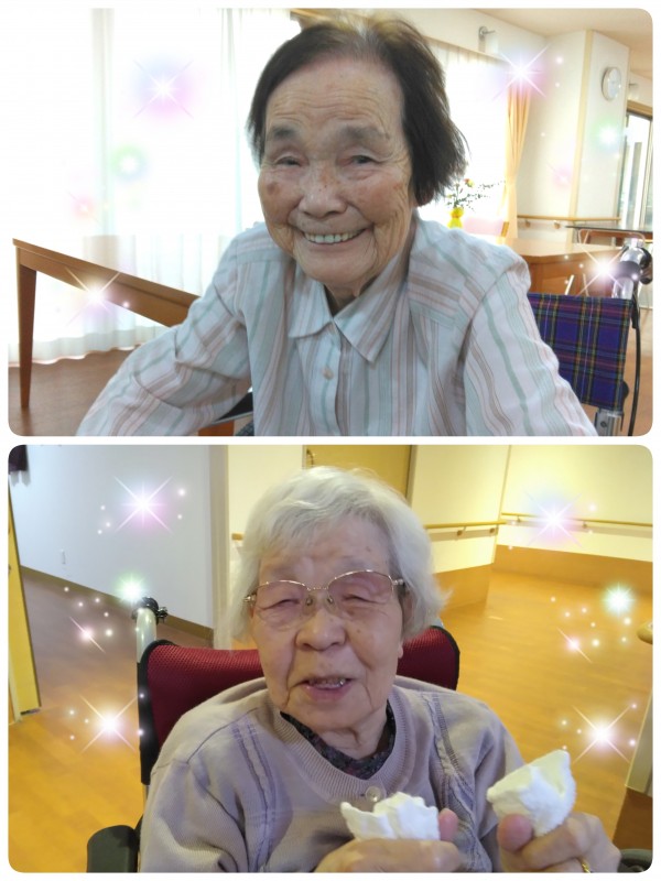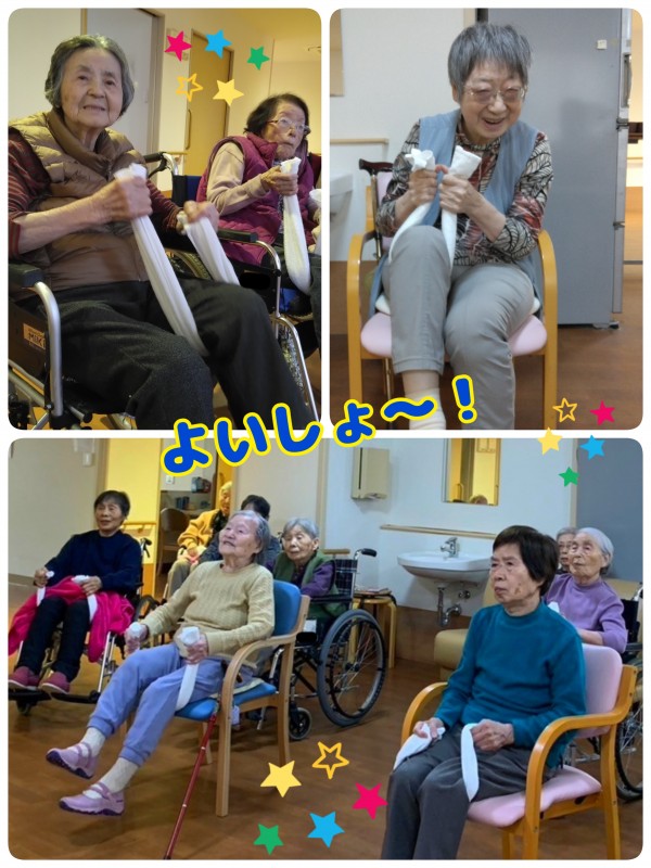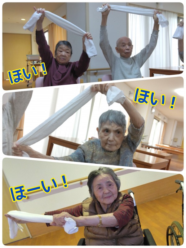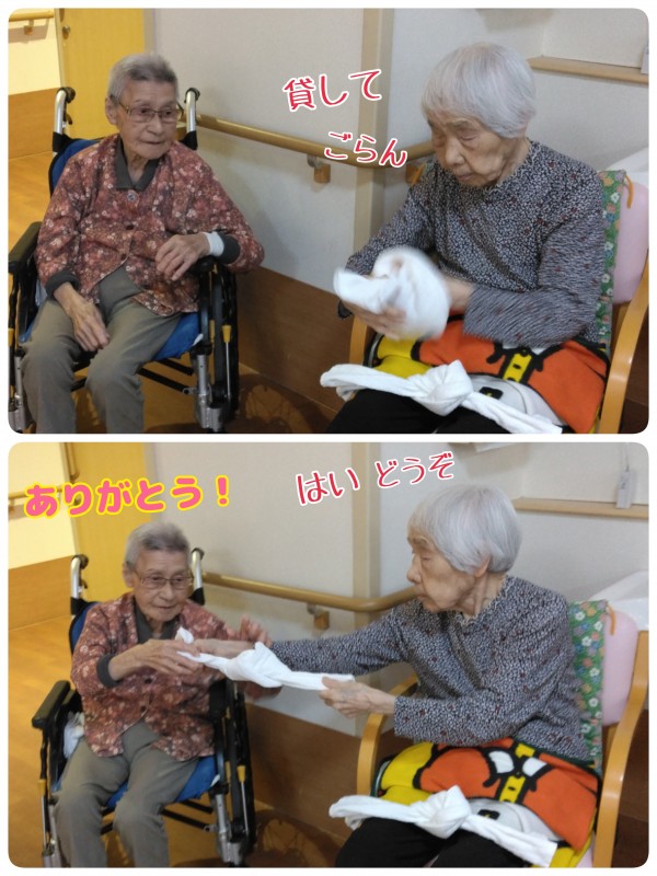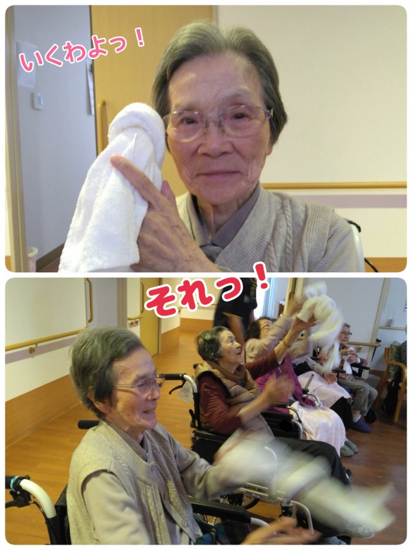 タオルを結ぶのを、お手伝いしてくださる103才様。