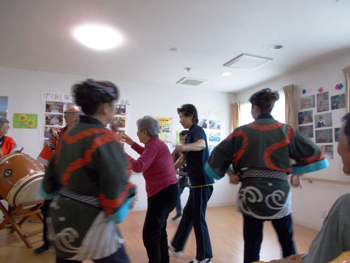 ご入居者のみなさんも日頃の太鼓のお稽古の成果を発揮して大きな太鼓を力強くたたきました♪