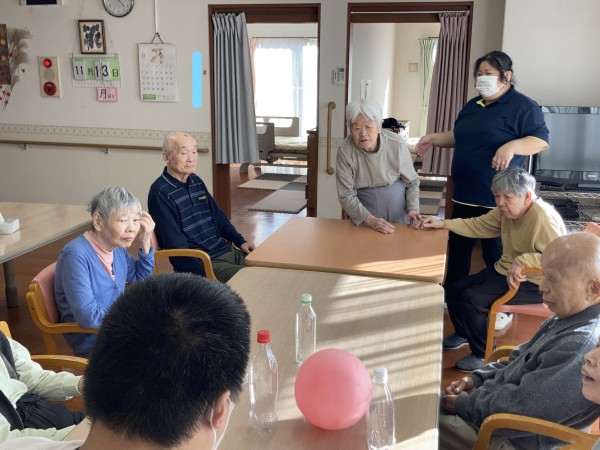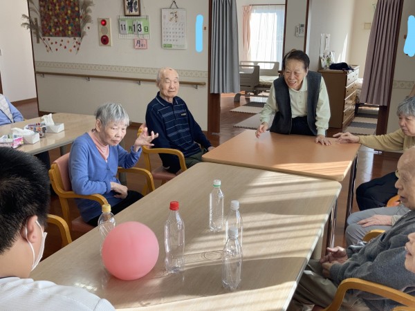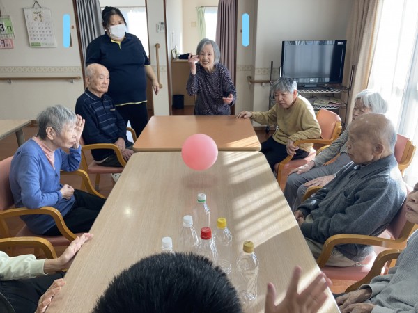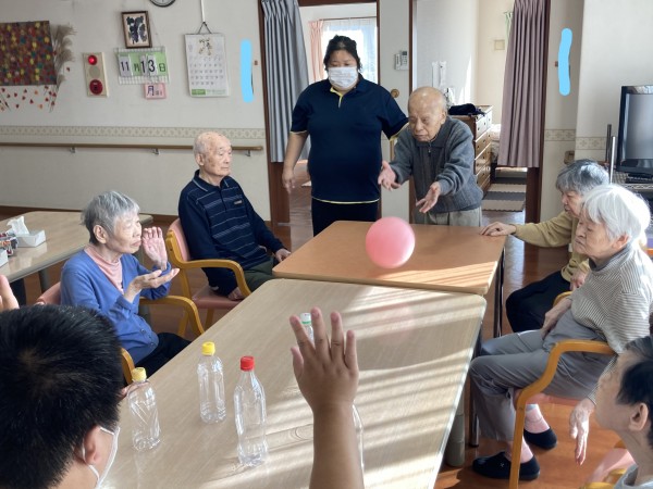 職員からの「もう少しでおやつの時間ですが、皆さんどんなおやつが食べたいですか?」の言葉かけに、「ケーキ!」、「たい焼きが食べたい!」、「たこ焼きがいい!」と、皆さんそれぞれに食べたい物を答えながらボールを投げていただきました(*^^*)