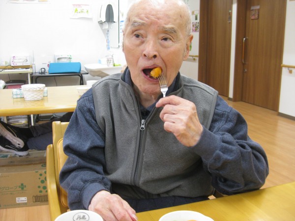 たい焼き、果物を美味しそうに召し上がられていました(*^_^*) 大好きなの? とのお言葉です。 果物も楽しみにされていました!