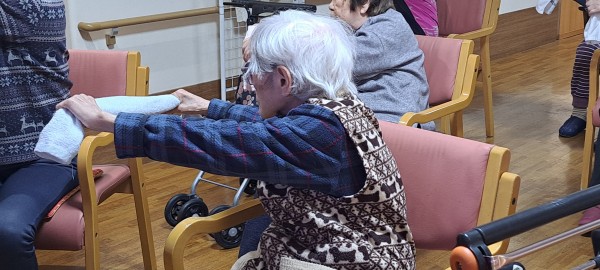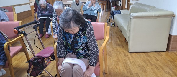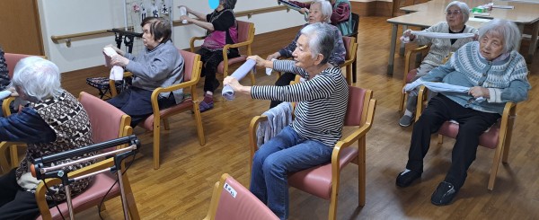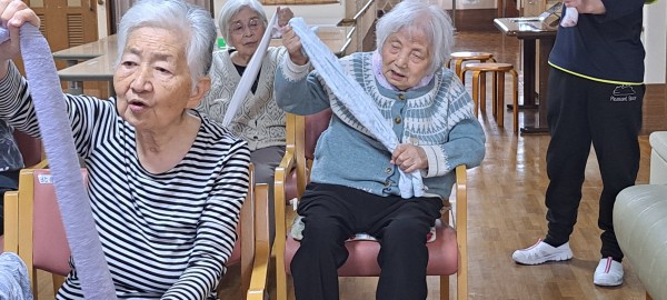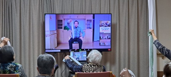 「体が柔らかくなりました。とても楽しいですね」と仰られ、とても笑顔溢れるリモート体操のお時間を