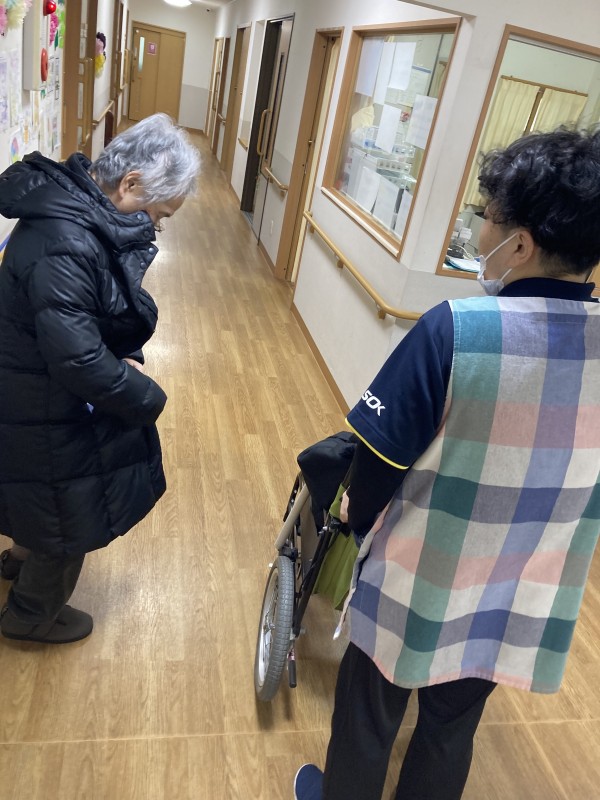 続いて歩ける方は歩いて頂き、車椅子の方は介助にて全員駐車場に集合しました。