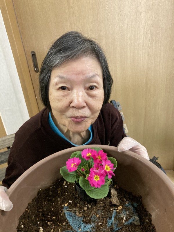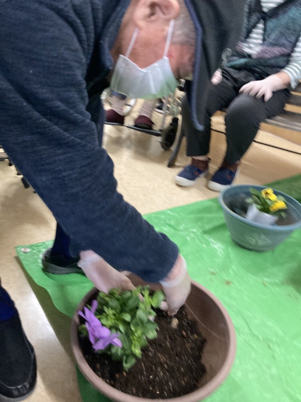 皆さんと一緒にパンジーやシクラメンなど色々な花を植えました。