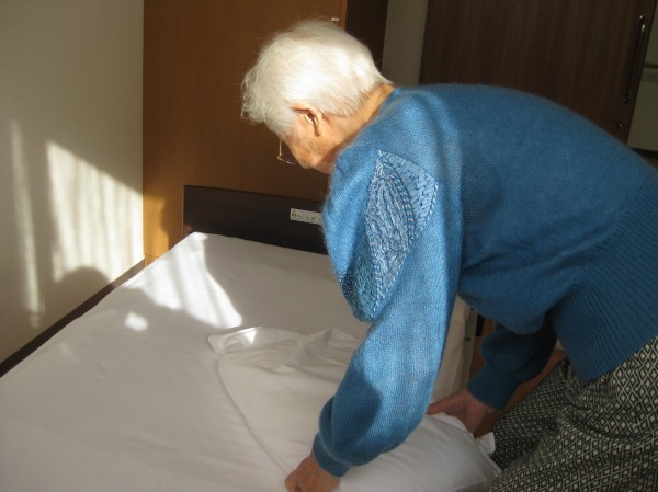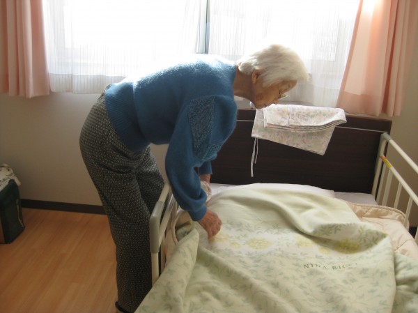 職員と一緒にシーツ交換をしているご様子です( ^ω^)・・・ テキパキと素早くシーツ交換して下さいました。綺麗に仕上がりました(*^。^*)