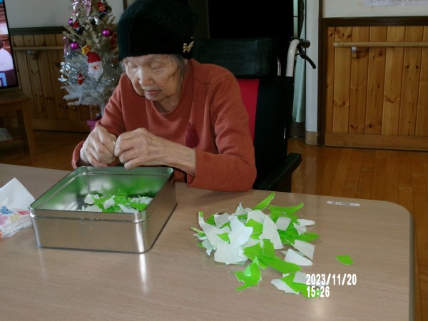 そして下書きを終えた後は、ひたすら折り紙をちぎります(笑)