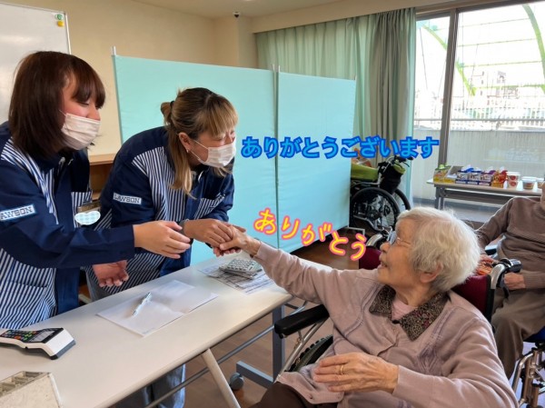 ご入居者様も嬉しくて「ありがとう」と握手。