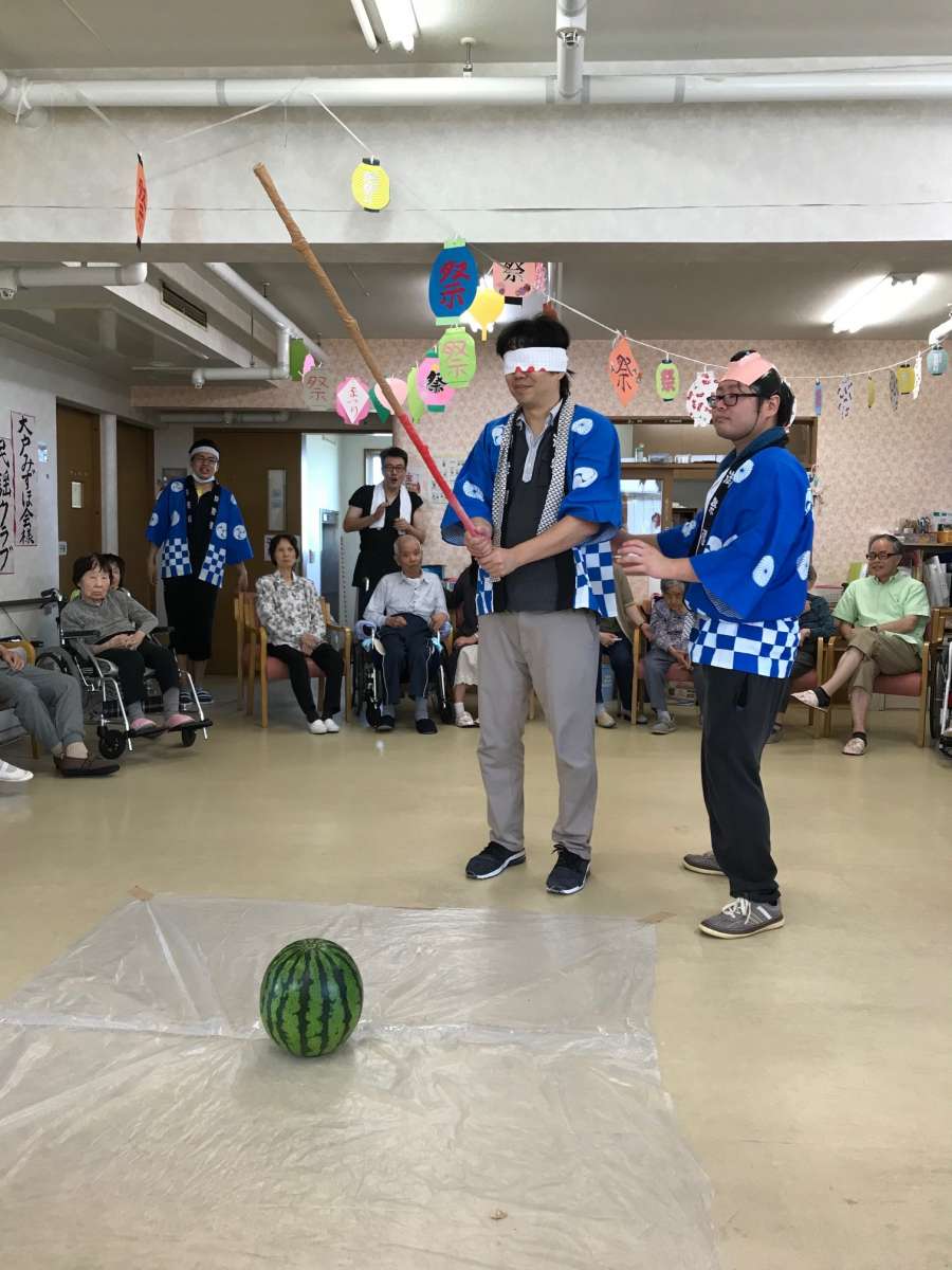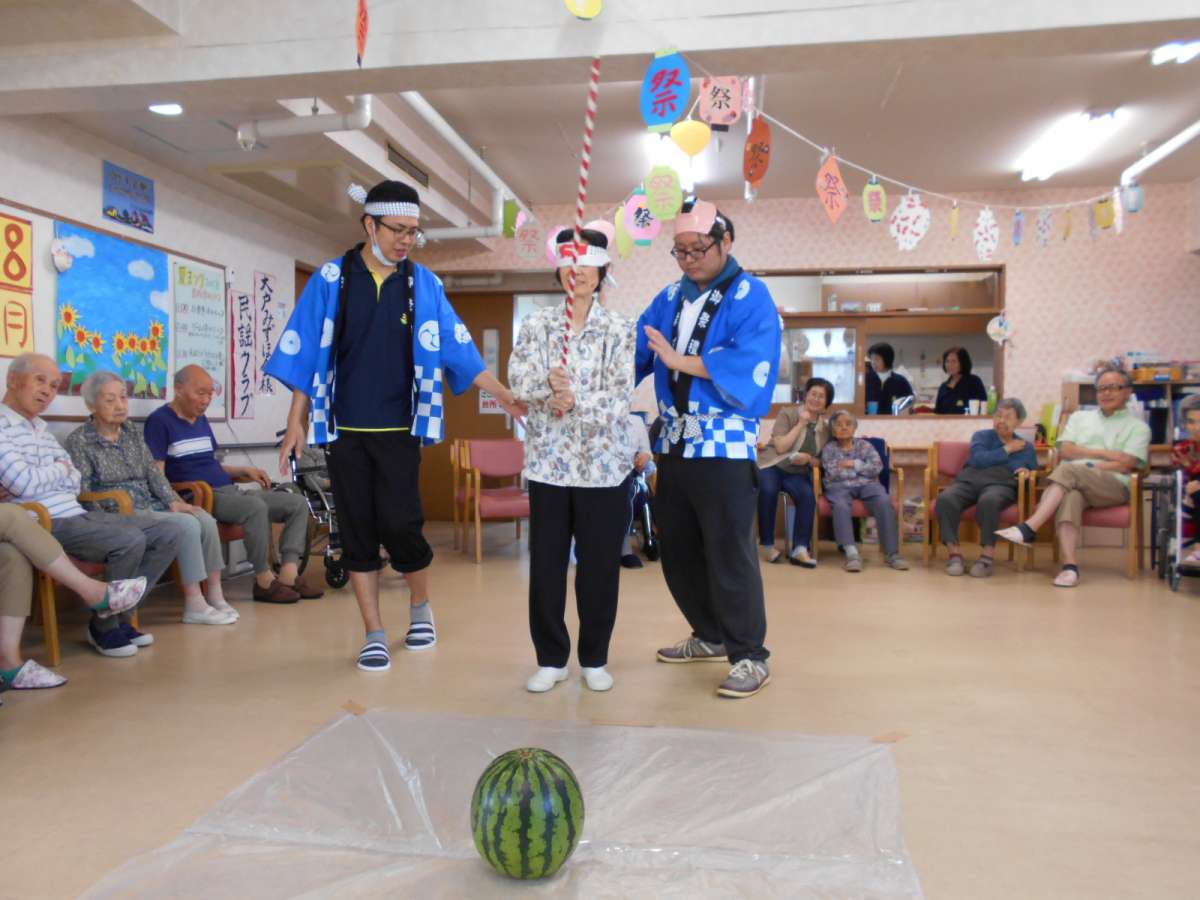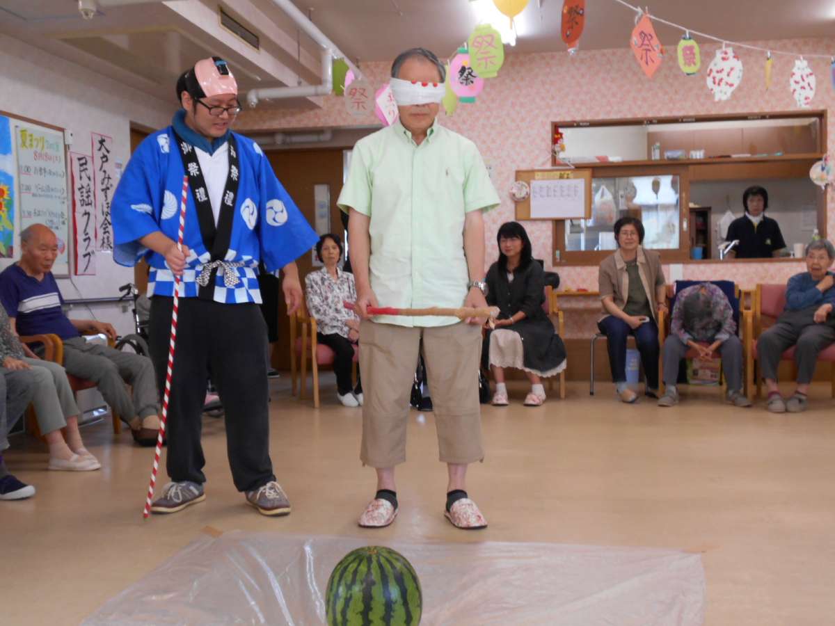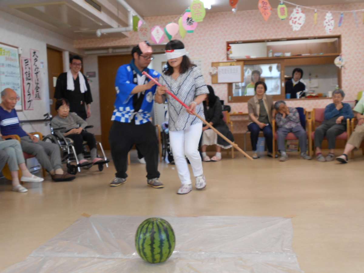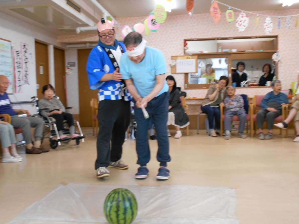 利用者様、ご家族様も参加して頂き、見事に少しだけ割れて、