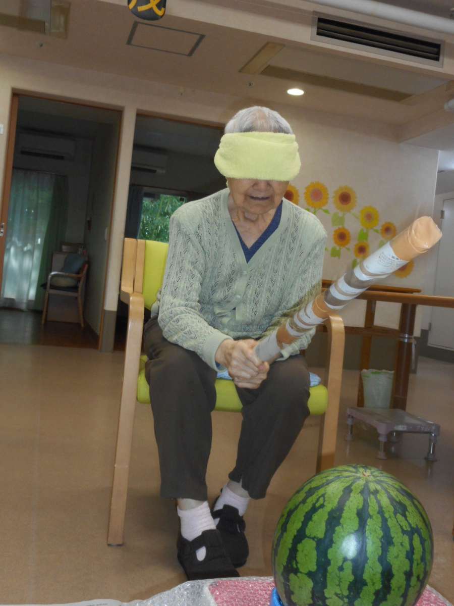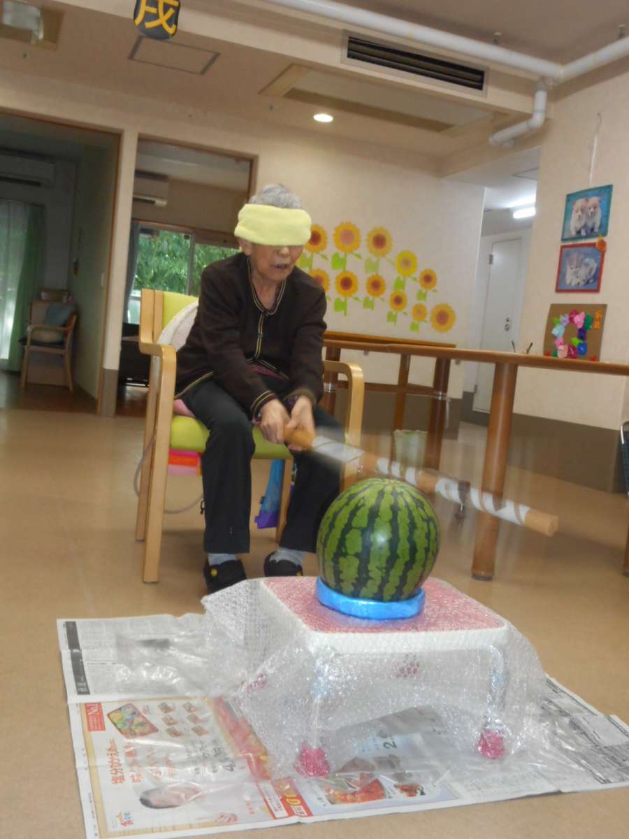 暑さなど吹き飛ばす勢いで元気にスイカ割りをしました!!