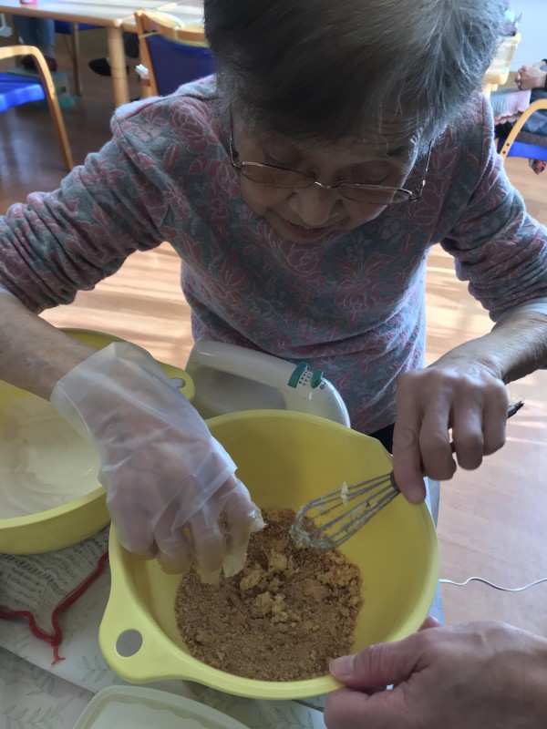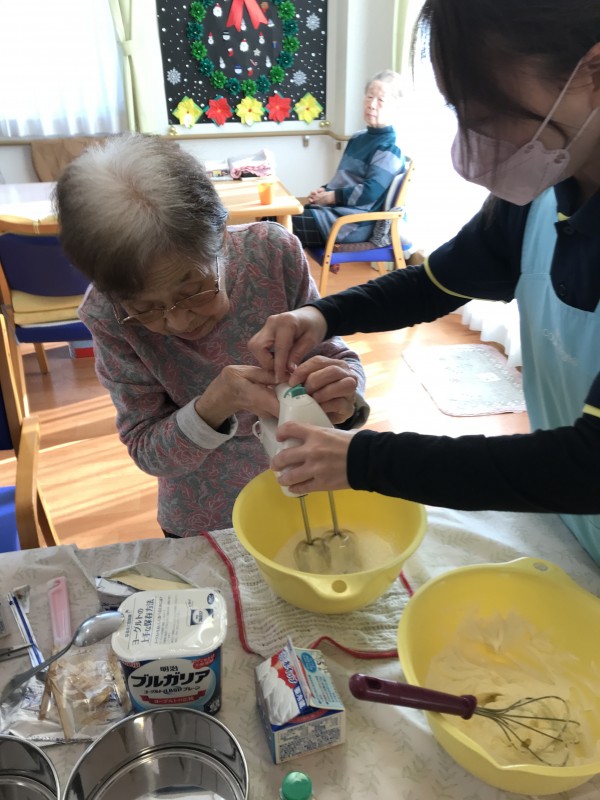 ハンドミキサーを使って材料を混ぜていきますっ♪