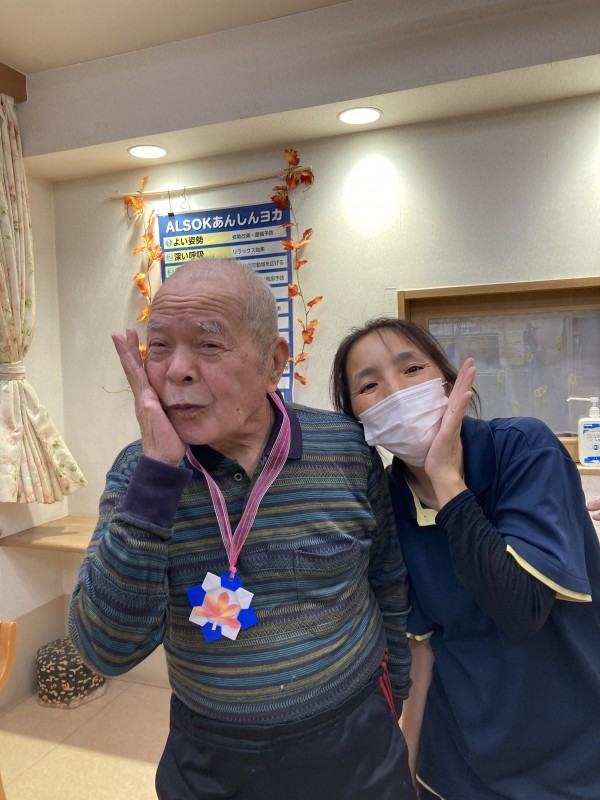 利用者様に「秋の紅葉のメダル」を贈りました!