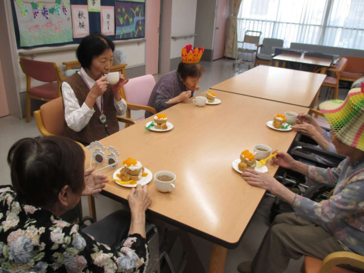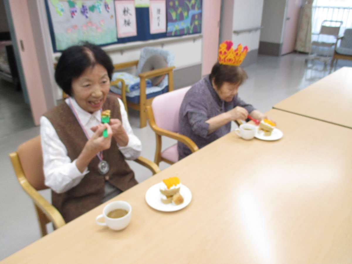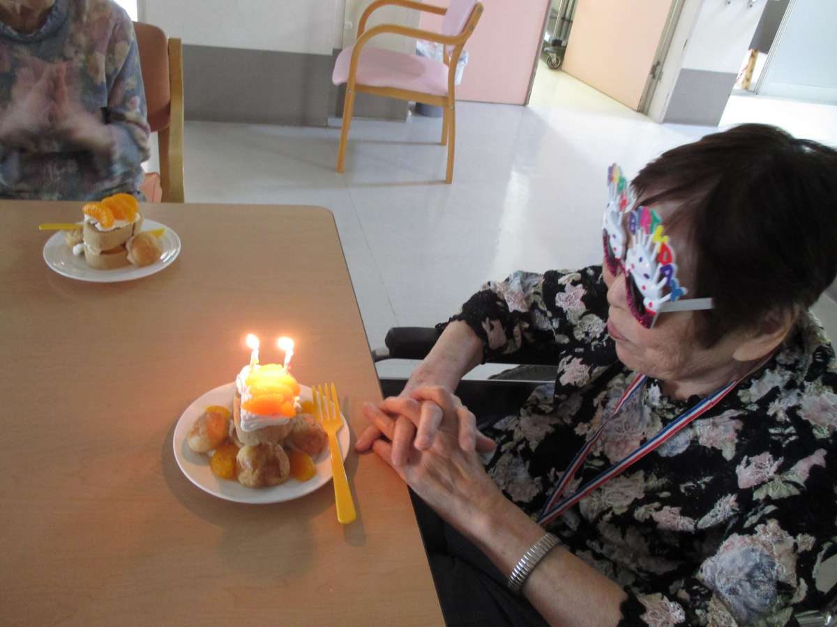 お誕生日当日 職員の手作りケーキでお祝いです。