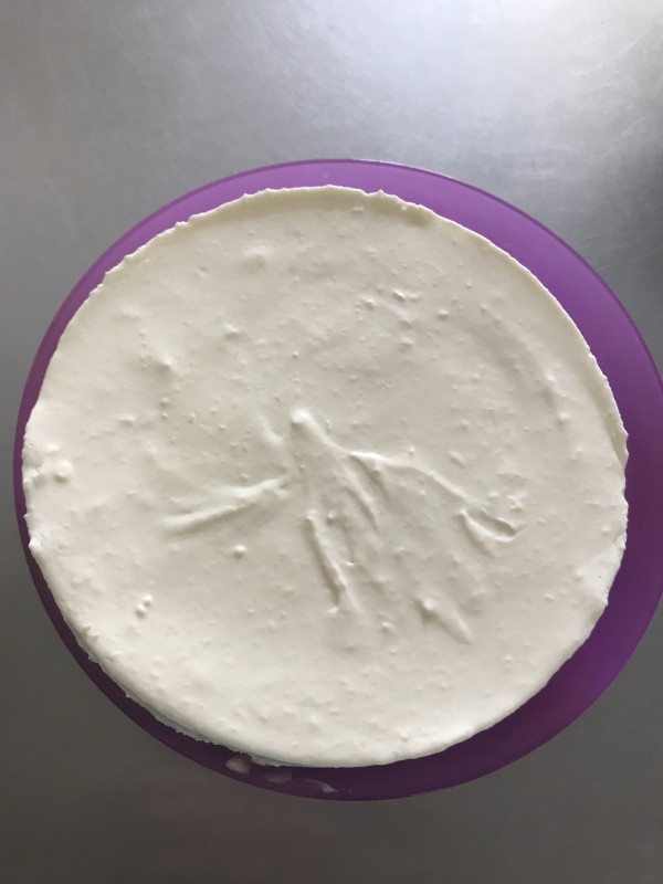 冷やしたレアチーズケーキは、暖かいタオルで巻くとキレイに型抜きが出来ると教わったので、