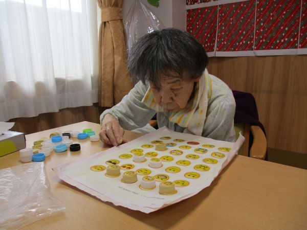 これは台紙と同じ柄のキャップを順番に並べる脳トレです