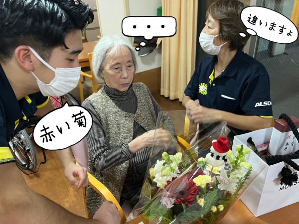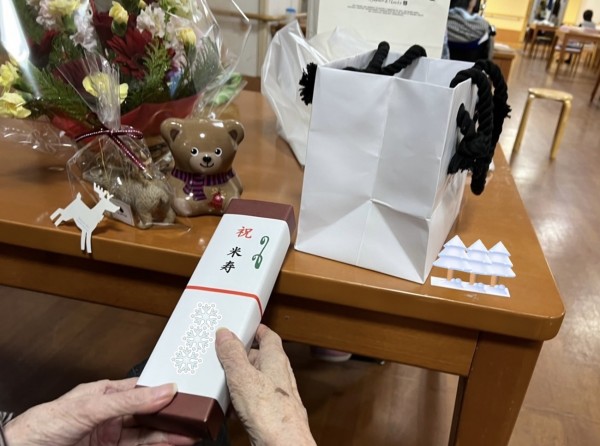ご家族様からのクリスマスプレゼントと米寿のお祝いに笑顔が溢れるマダムなのでした。