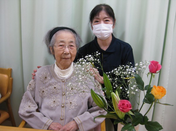 こんにちは! グループホームみんなの家・あきがせの介護ブログです! よろしくお願いいたします。 今日は娘様がお花と果物の差し入れがありました。そのご様子をお知らせいたします!