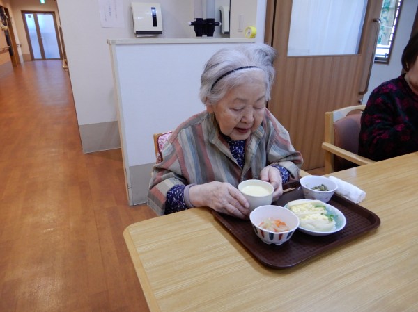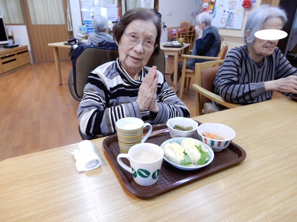 3. 12/8 久しぶりのパンの日!コップにはコーンスープが入っています。うれしい!と声が上がります。