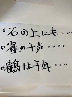 「石の上にも…」「鶴は千年…」と皆さんに問いかけ答えていってもらうゲームです。