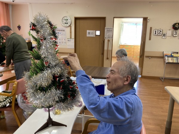 もう12月も半ばとなりましたが、ホーム内では早めにクリスマスの飾り付けを準備いたしました。その際入居者様にも手伝っていただきました