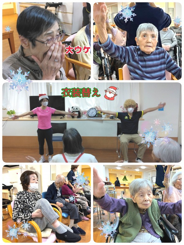 サンタ帽をかぶった岡庭先生と、アフロな門田くんが皆様を楽しく盛り上げます!