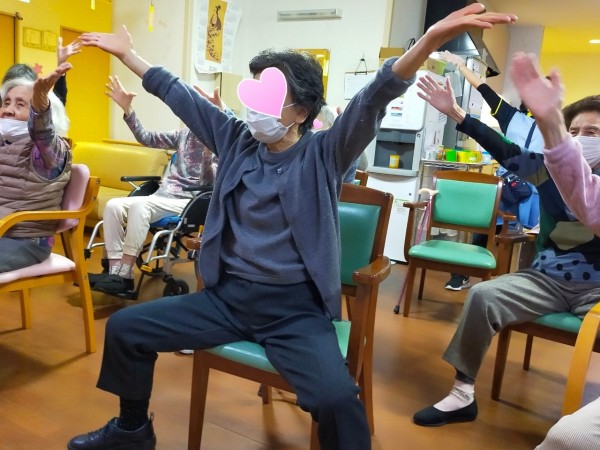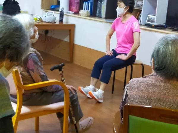目の前に岡庭先生が居ての体操に、ご利用者様も張り切って体を動かしていきます。