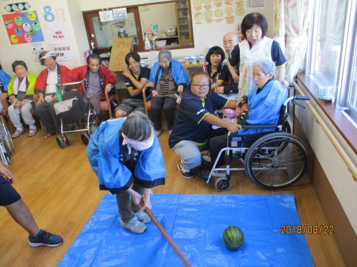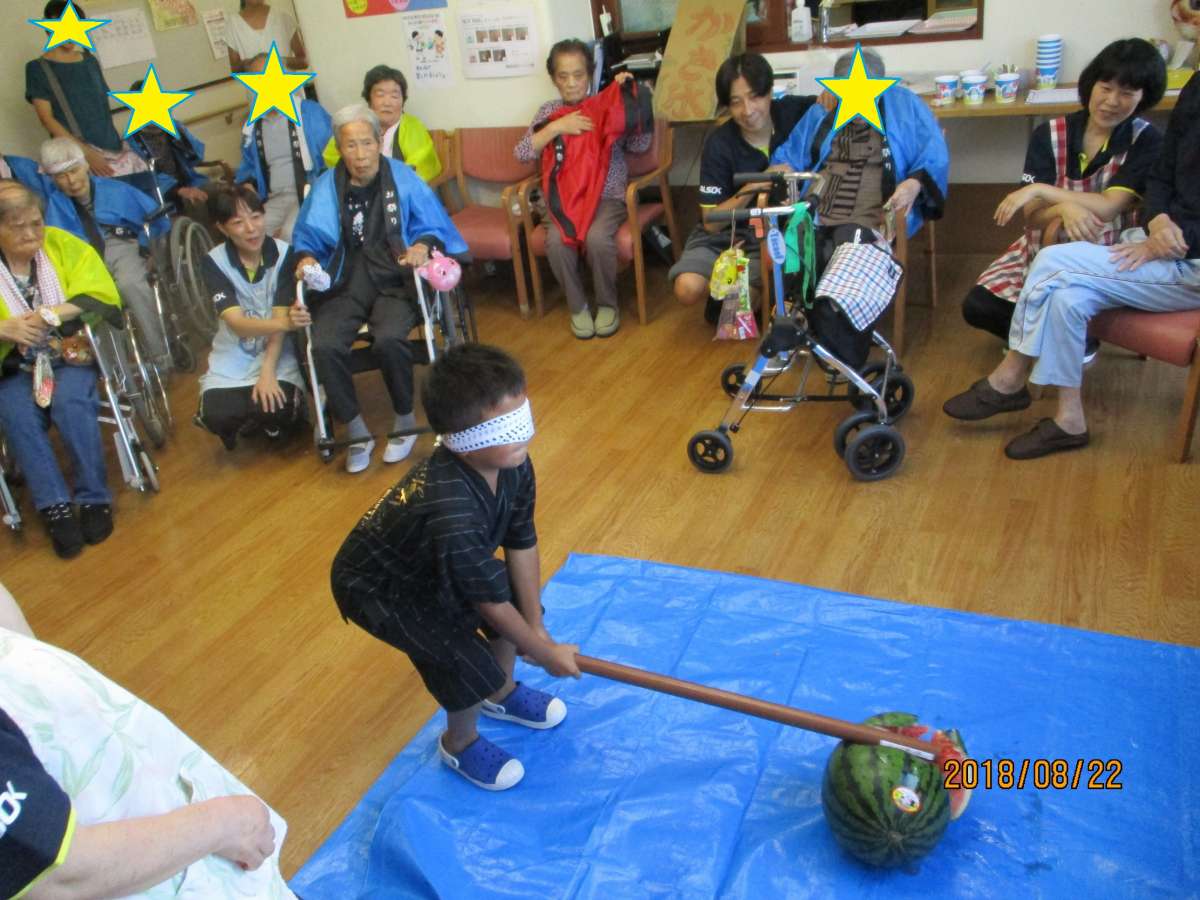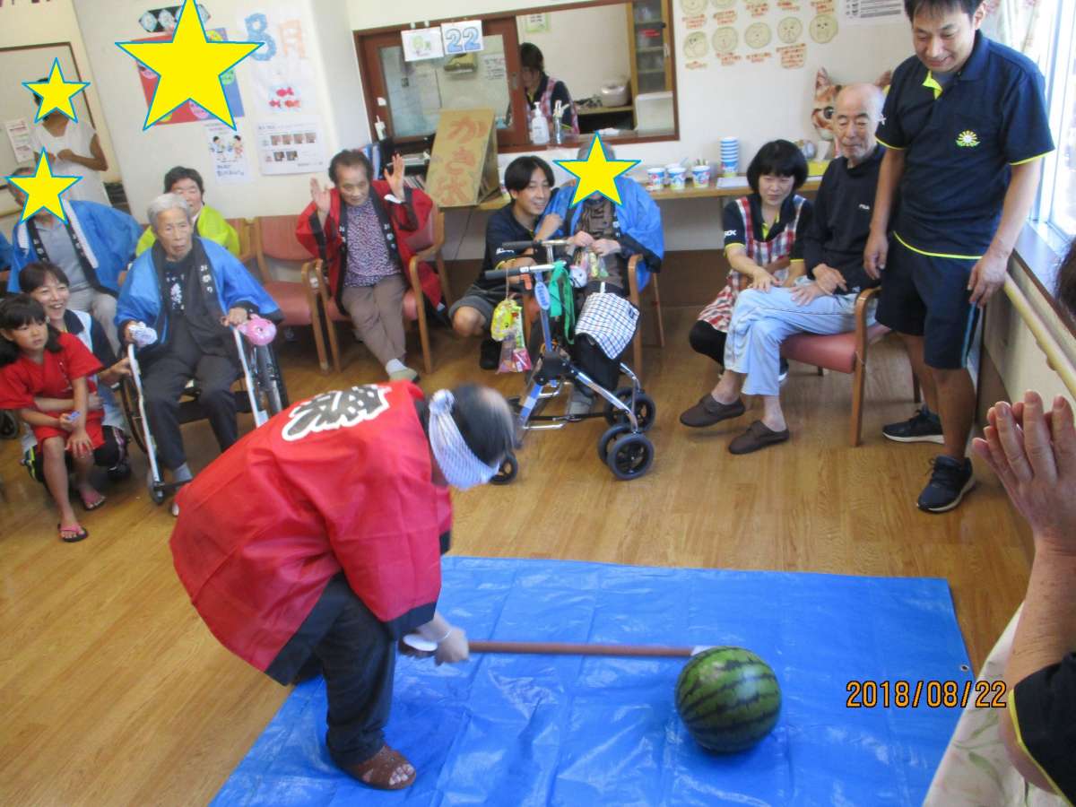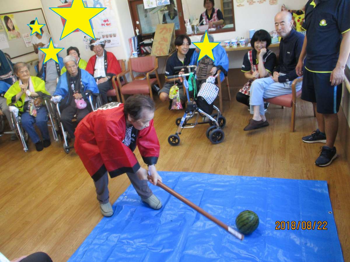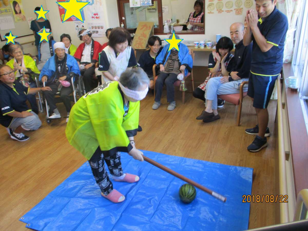 今回挑戦してくださったご利用者様はスイカ割りのセンスがあるのか、見事にヒットした方がけっこういらっしゃいました(^_^)v