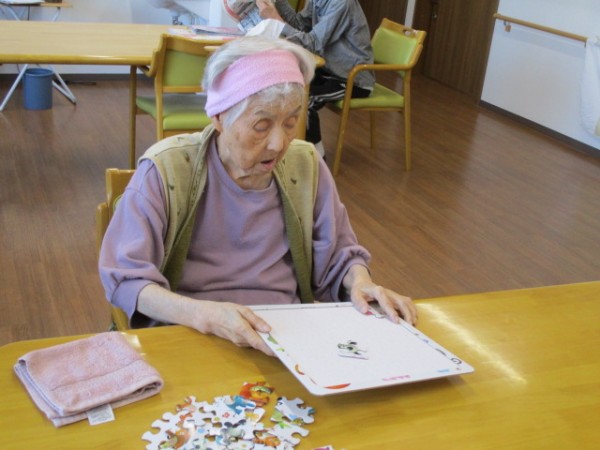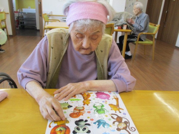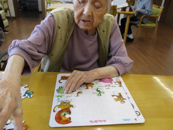 これはどうしたらいいのかしら?? 一枚ずつパズルをおいていきました。「何か見えてきたわ?」どんどんと並べていきました(^^♪