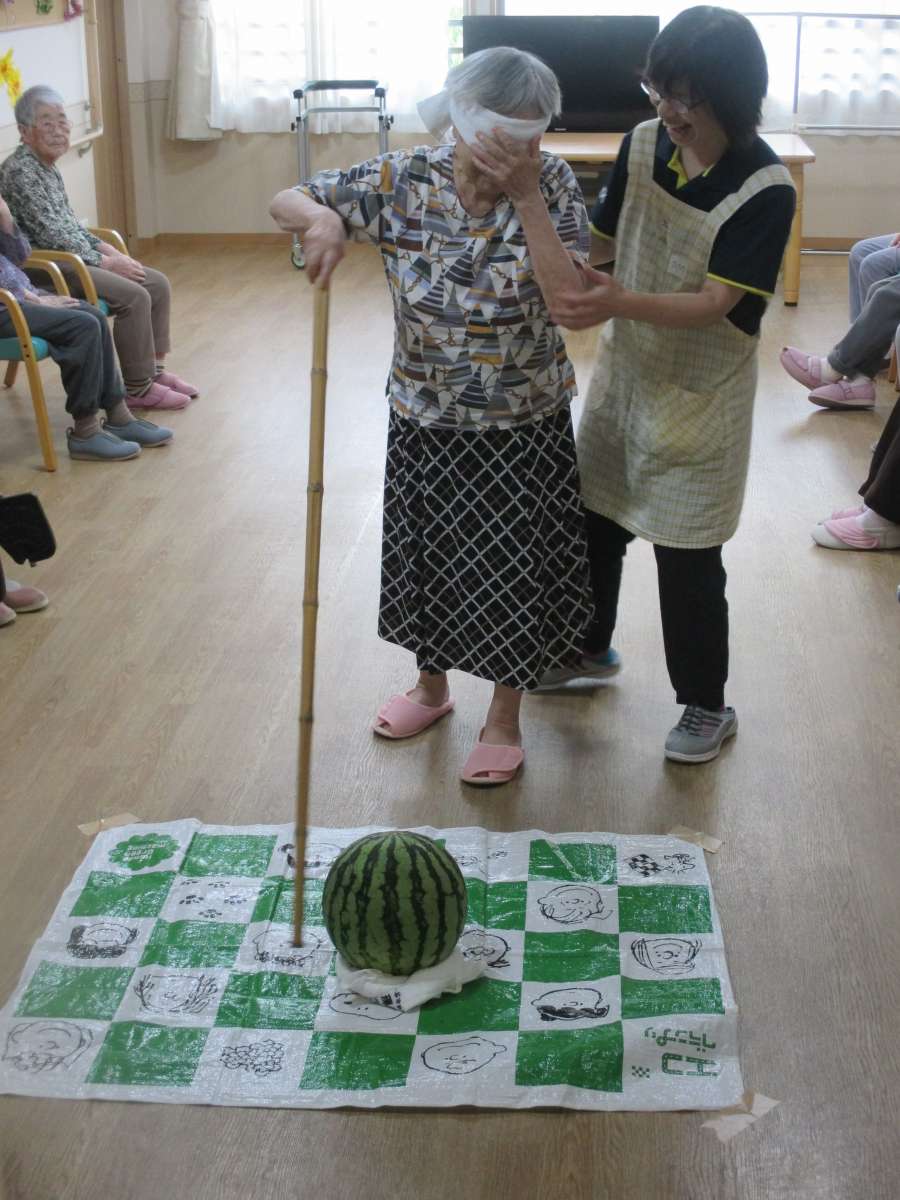 当ホームでは先日、スイカ割りを開催しました!