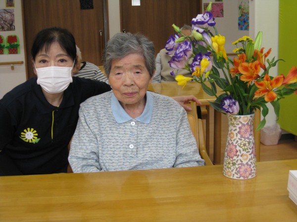 お花とおズボンにプリンアラモードケーキをお持ちくださいました(*^。^*)