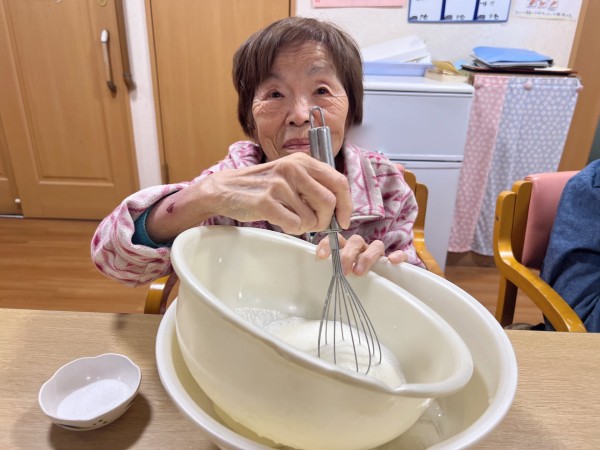 まずは皆さんと協力してケーキを作っていきます。
