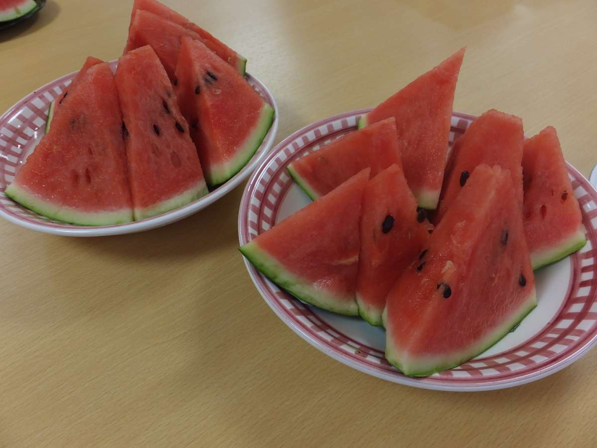 ⑤最後に施設長の実家の手作りスイカを召し上がられました。