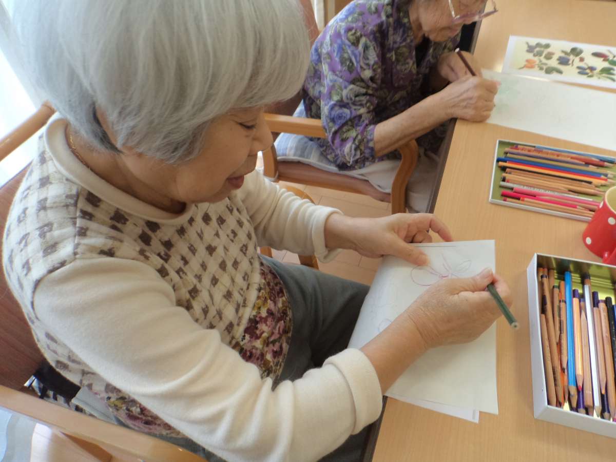 副賞でゲットしたカラオケや 得意の塗り絵をして