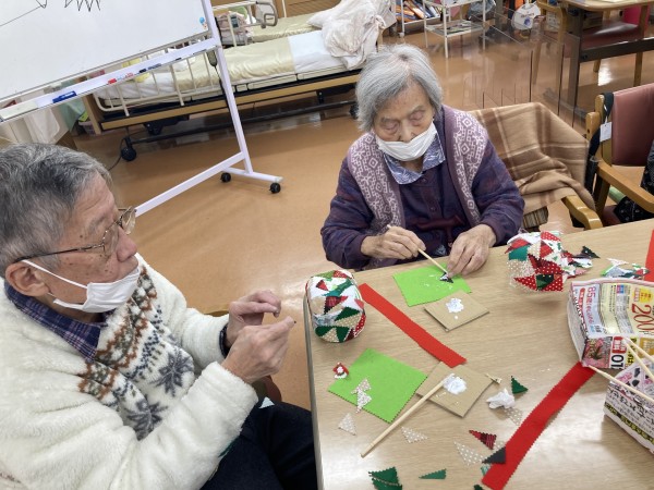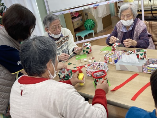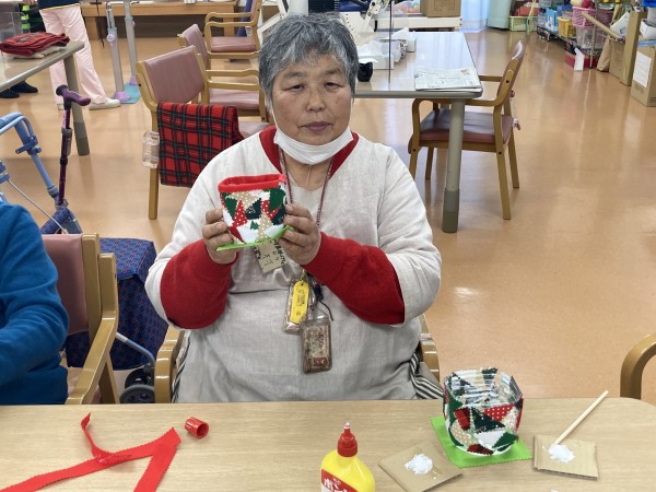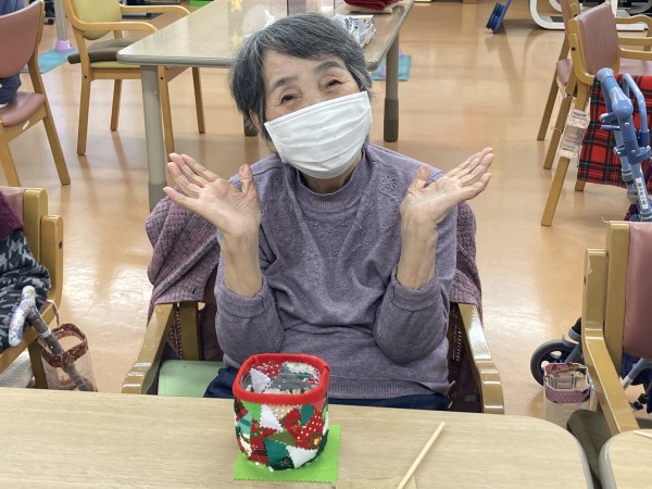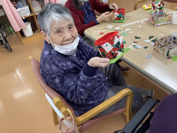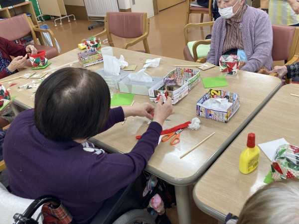 では気を取り直して、本日は18日(月)に行われた「クリスマス制作」の様子をご紹介したいと思います♪クリスマスに向けて色々と準備はしていますが、今回はスタッフ考案「なんちゃってパッチワーク」というのを作っていきました!
