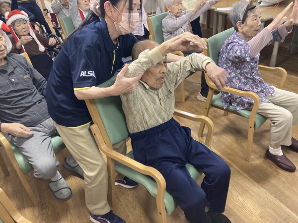続いてリモートの指示に合わせて皆様で身体を動かされました。皆様積極的に大きな声をだし楽しそうにされていました。短いブログでしたがここまで読んで頂きありがとうございました。