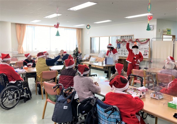 ご利用者の皆様にもサンタの帽子や服を着て頂いたので