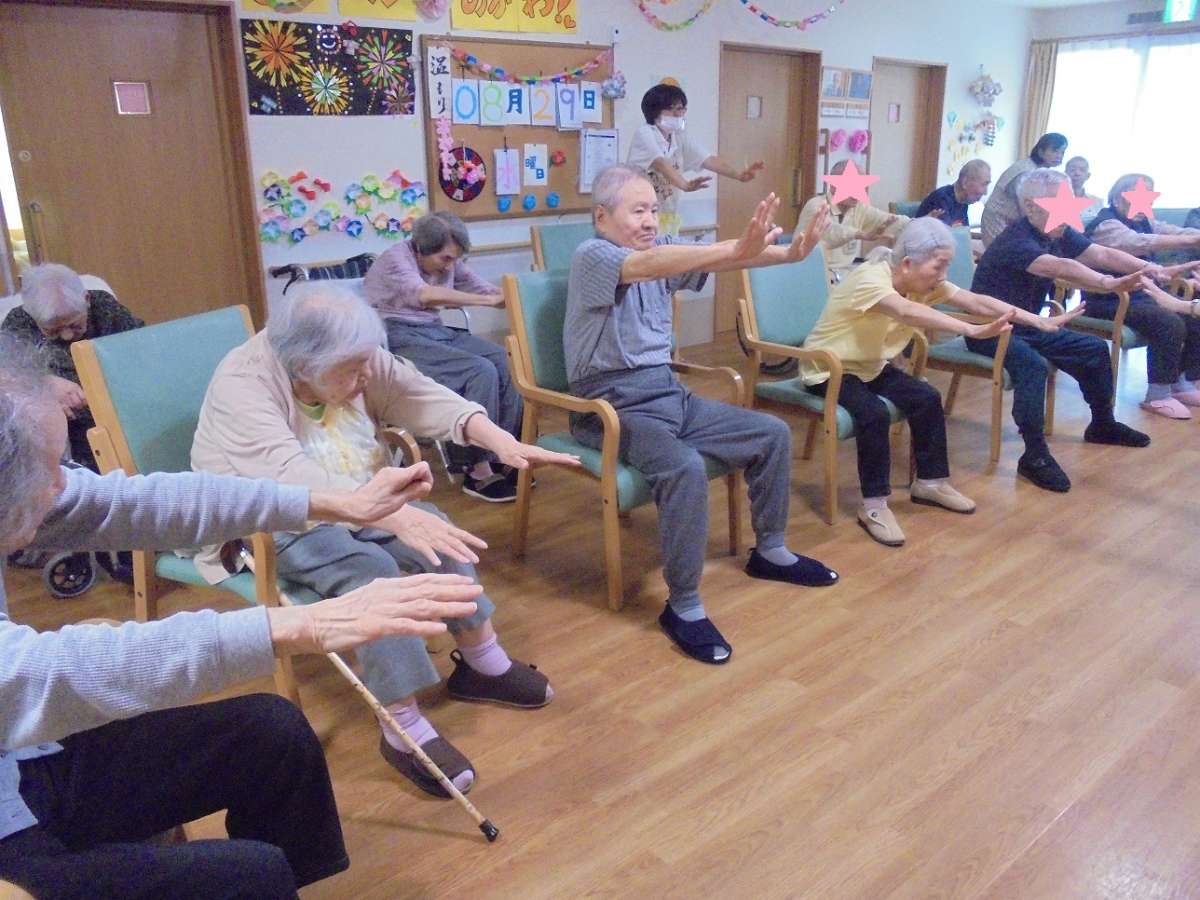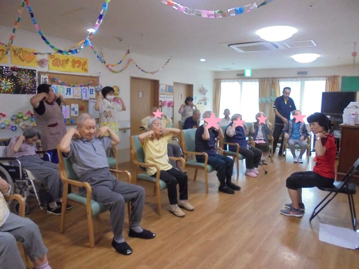 こんにちは!グループホームみんなの家川崎野川南台です!今日は、「いきいきリズム体操」です!体操の先生に来ていただき、手や口の運動をはじめ、足を使ったり、体を伸ばしたり、全身運動をリズムに乗って行いました!!
