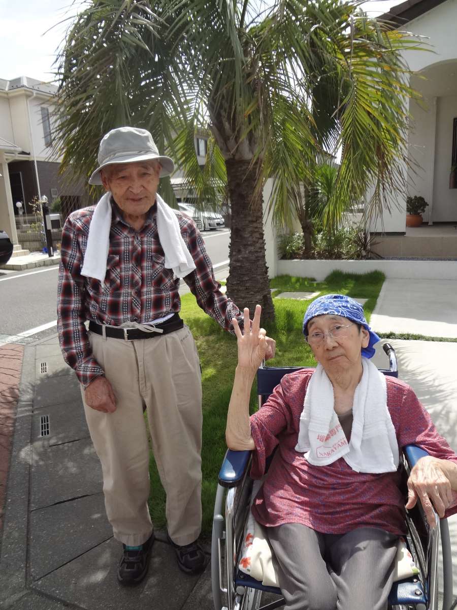 今まで暑く外に出られなくご利用者様もがっかりしていましたが、散歩に出て笑顔が見れました。
