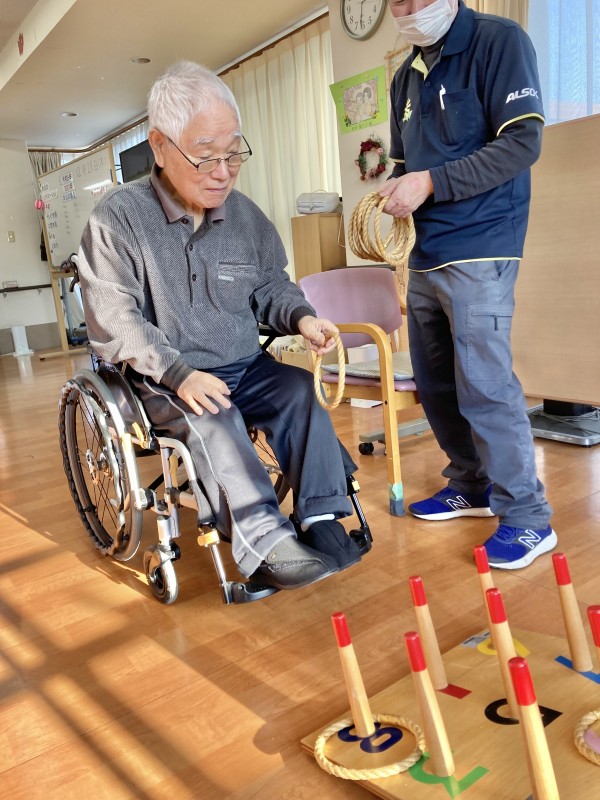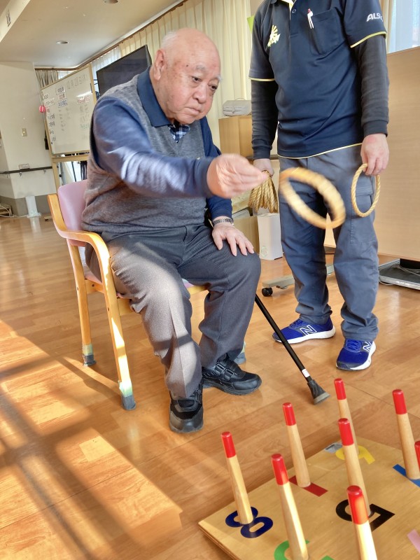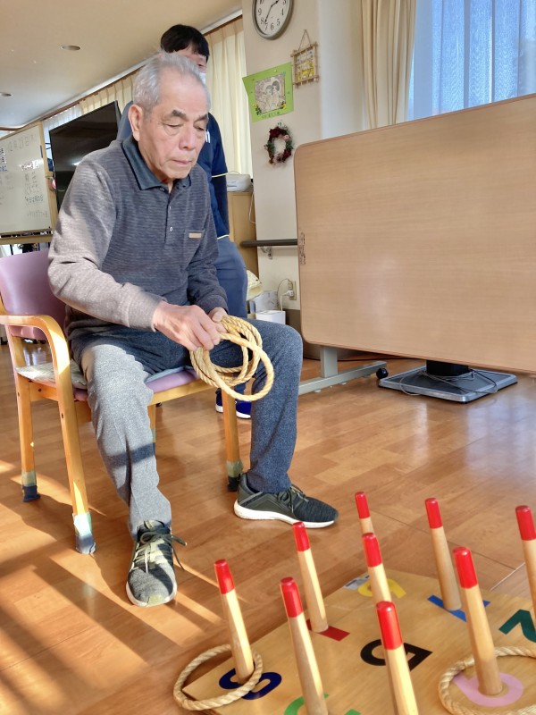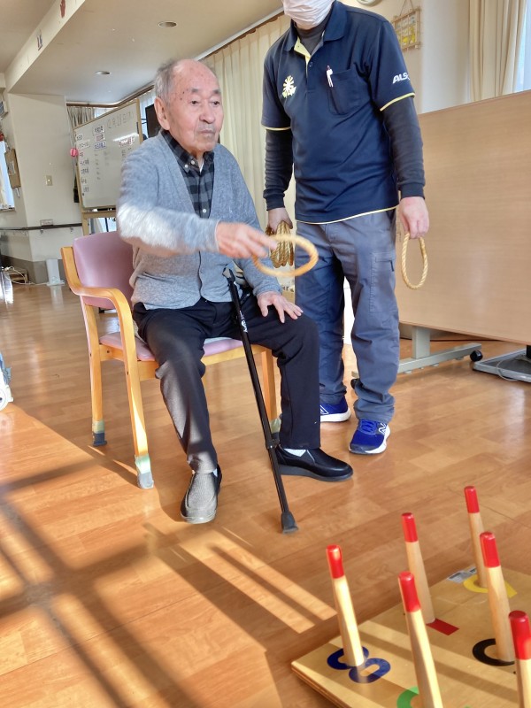 おやつを召し上がった後は、棒倒しゲームをしました。