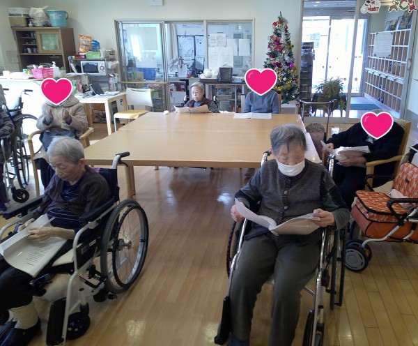 職員からギター演奏のプレゼントがあり、各階に分かれて、みんなでクリスマスソングを 歌いました。