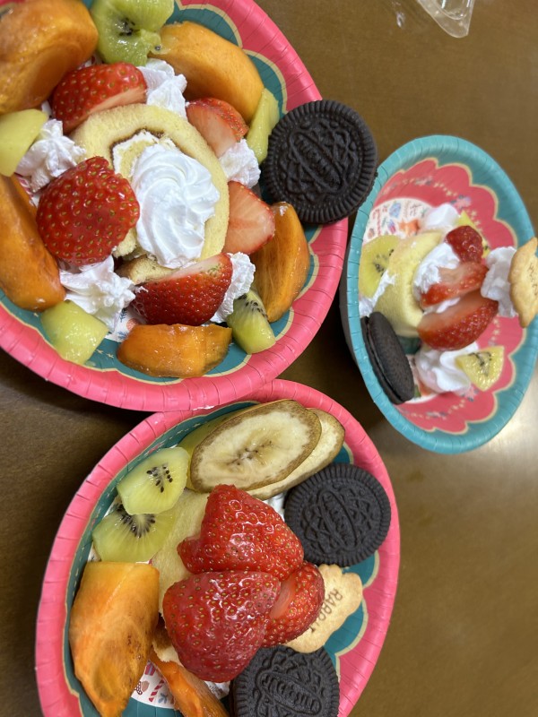 そして、おやつを食べていただきながらテレビで「一年間の思い出ムービー」を流しました!