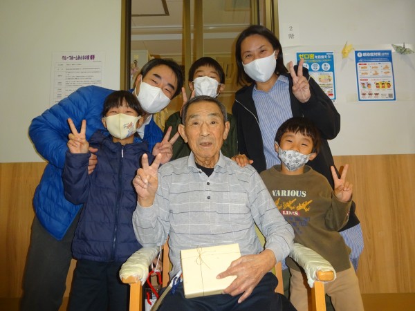 「おめでとう!!」と可愛い元気な声が、、、そうです!S 様の次女様ご一家の面会です。3人のお孫様とは♥ペンフレンド♥