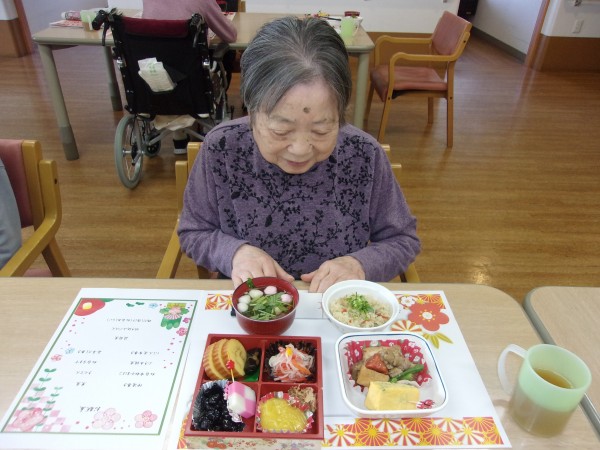 入居者様の皆さん美味しそうにおせち料理を召し上がっておりました。