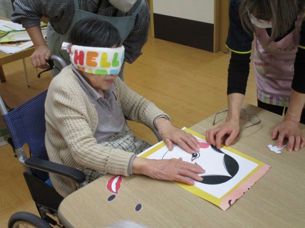 その後は目隠しをして福笑いです( ^)o(^ )!