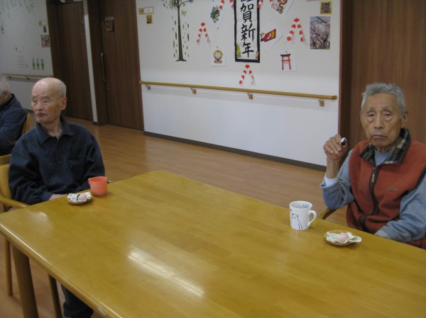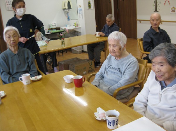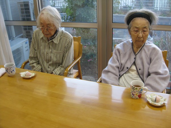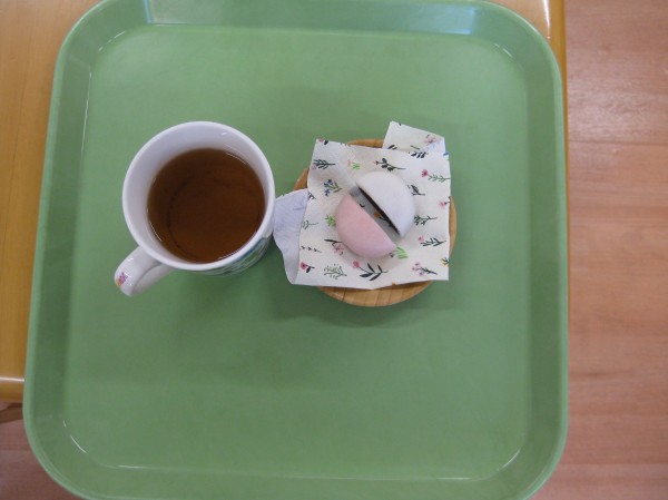 今日はおやつに紅白饅頭を提供しました。