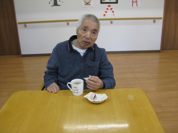 お饅頭、嬉しい?甘いもの餡子「大好き」と話されながら召し上がられいました(*^。^*)