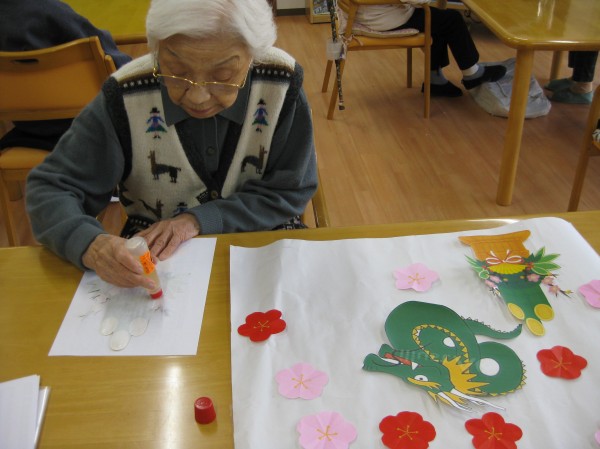 今年も毎月貼り絵を楽しく参加していただき健康で元気に過ごしていきたいと思います。