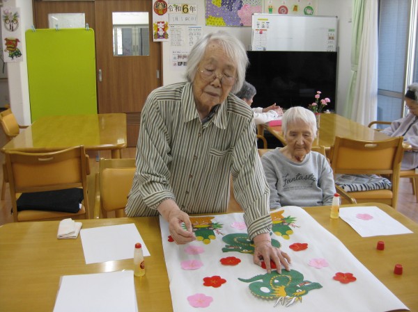 皆様で参加され立派な辰の貼り絵の完成です(^^♪